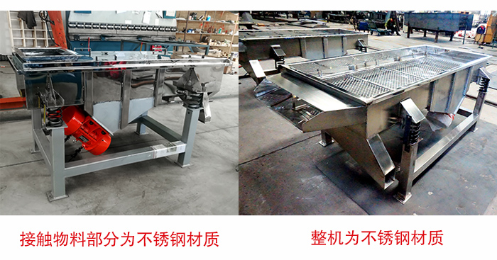 直線振動篩有兩種選擇方式:①接觸物料部分為不銹鋼材質,其他部分為碳鋼材質,②整機為不銹鋼材質,具體選擇哪種不銹鋼直線振動篩,還需要根據物料性質以及用戶的實際需求選用不同的材質,如果您的適用場景對衛(wèi)生要求高的話可以采用第二種方案。