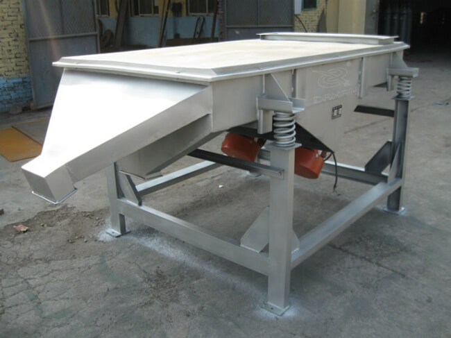 3、閉合電源開關(guān),確認振動電機同步反向旋轉(zhuǎn),進行10-20分鐘空運轉(zhuǎn),設(shè)備在運行時如有異常聲音,應(yīng)迅速關(guān)機進行檢查處理。設(shè)備運轉(zhuǎn)正常后,可將少量需篩分的物料通過進料口設(shè)入篩機內(nèi),確認物料向出料口方向行進,然后逐漸增加到所需和所能承受的給料量。