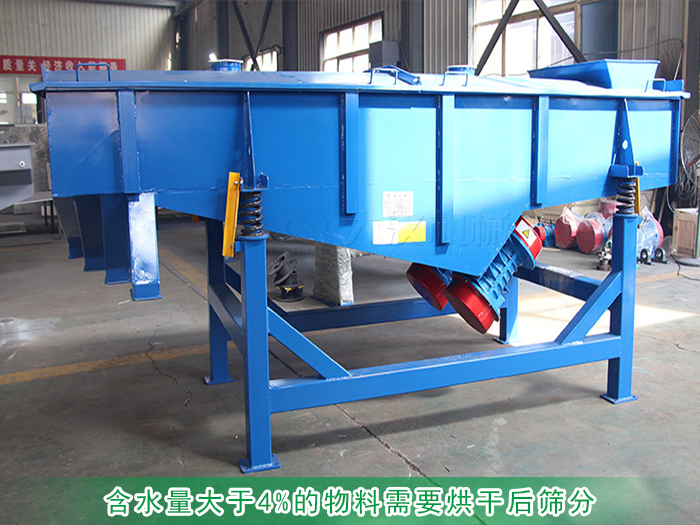 直線振動(dòng)篩在篩分含水量高或者粘性高的物料時(shí),需要減少物料的含水量后才能篩分使用,因?yàn)楹扛叩奈锪细哂姓吵硇停诤Y分過程中容易吸附在篩網(wǎng)上,造成篩網(wǎng)堵塞,對(duì)于含水量大于4%的物料需要烘干后篩分,含水量大于20%時(shí)需要采用濕式篩分。