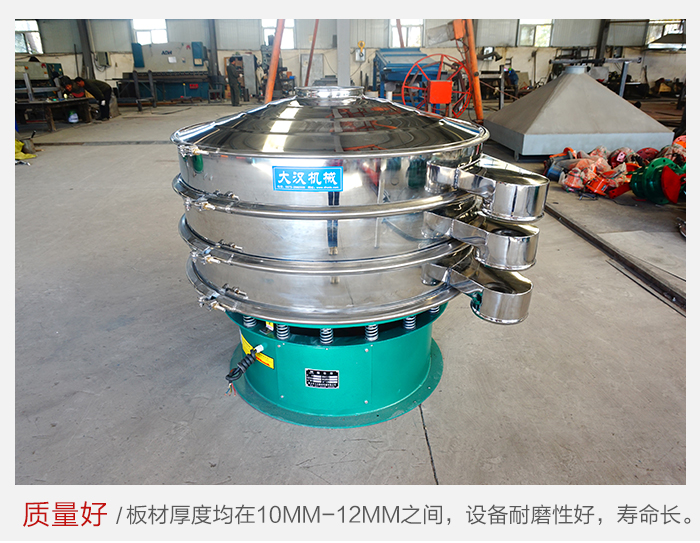大漢廠家生產(chǎn)的雙層旋振篩采用優(yōu)質(zhì)碳鋼或不銹鋼材質(zhì),板材厚度均在10mm-12mm之間,設(shè)備耐磨性好,使用過程中不會因設(shè)備質(zhì)量問題而造成設(shè)備停機問題,可以在很大程度上降低設(shè)備的維護(hù)費用。