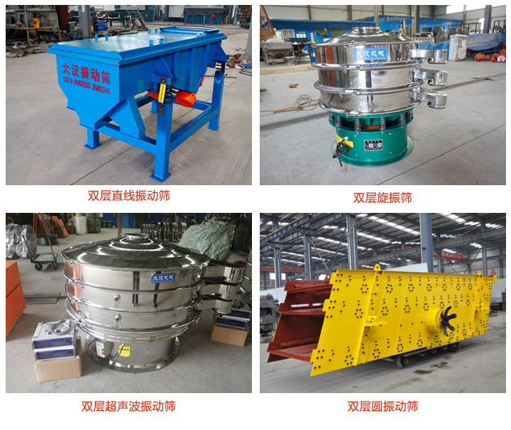 雙層振動(dòng)篩有兩層篩網(wǎng)、三個(gè)出料口、可將一種物料分成三種不同的規(guī)格,篩分精度高達(dá)95%以上,雙層振動(dòng)篩有很多型號(hào),如雙層直線振動(dòng)篩、雙層旋振篩、雙層圓振動(dòng)篩、雙層超聲波振動(dòng)篩等,下面小編幫助大家羅列一些這些雙層振篩的主要型號(hào)。