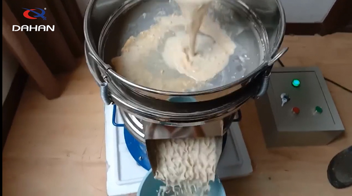 豆?jié){振動篩主要用在家庭和小型的手工作坊,通過使用豆?jié){過濾振動篩將豆?jié){和豆渣分離,提升豆?jié){的口感。