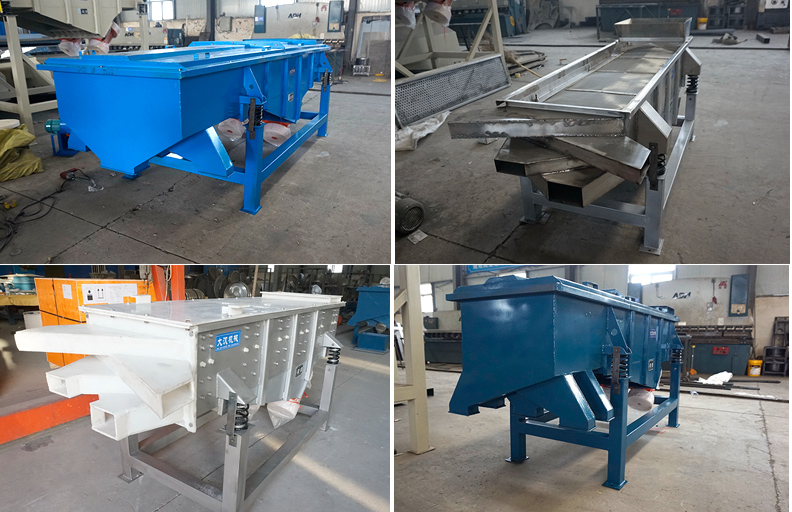 直線振動(dòng)篩簡(jiǎn)稱(chēng)直線篩,其主要功能是分級(jí)、過(guò)濾和除雜,以?xún)膳_(tái)振動(dòng)電機(jī)為振動(dòng)源,使物料在篩面上直線跳躍,物料均勻進(jìn)入篩面,各種規(guī)格的物料通過(guò)多層矩形篩網(wǎng)產(chǎn)生并從各個(gè)出料口排出。