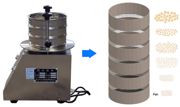 3、篩機(jī)可配8層試驗篩(包括篩底),可同時從一種顆粒物料中分離出2-7個粒度段。