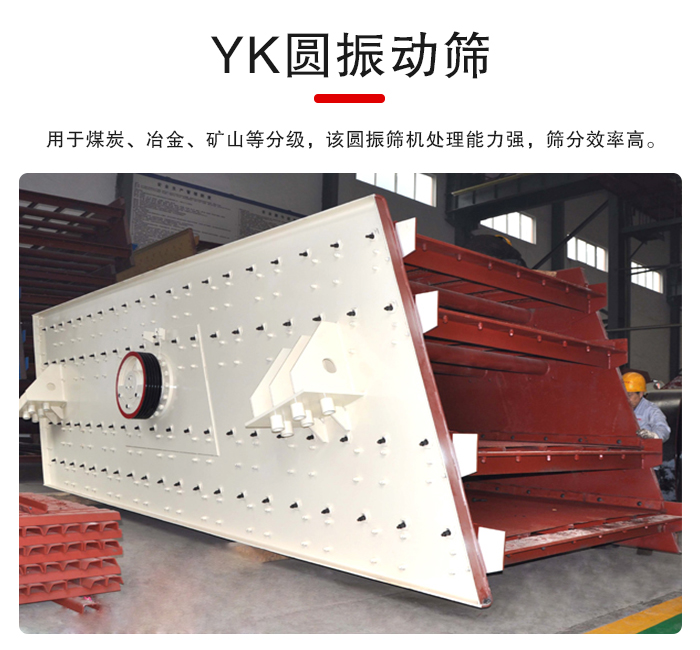 YK圓振動(dòng)篩是固體物理分級(jí)的重要設(shè)備篩分效果好,被應(yīng)用在許多行業(yè),如礦山、建材、能源、選煤、交通、能源、化工等行業(yè)的產(chǎn)品分級(jí),
