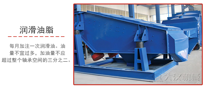 5、高效振動篩若采用潤滑脂潤滑,應(yīng)每月加注一次潤滑油。油量不宜過多,加油量不應(yīng)超過整個軸承空間的三分之二,否則會引起軸承溫度過高。