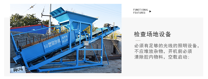 4.儲(chǔ)料斗容量大,使裝載機(jī)合理安排主設(shè)備(如攪拌站)與篩砂機(jī)的上料時(shí)間,避免裝載機(jī)在不同上料點(diǎn) 及原料間頻繁換位,使裝載機(jī)輕松上料,降低勞動(dòng)強(qiáng)度。