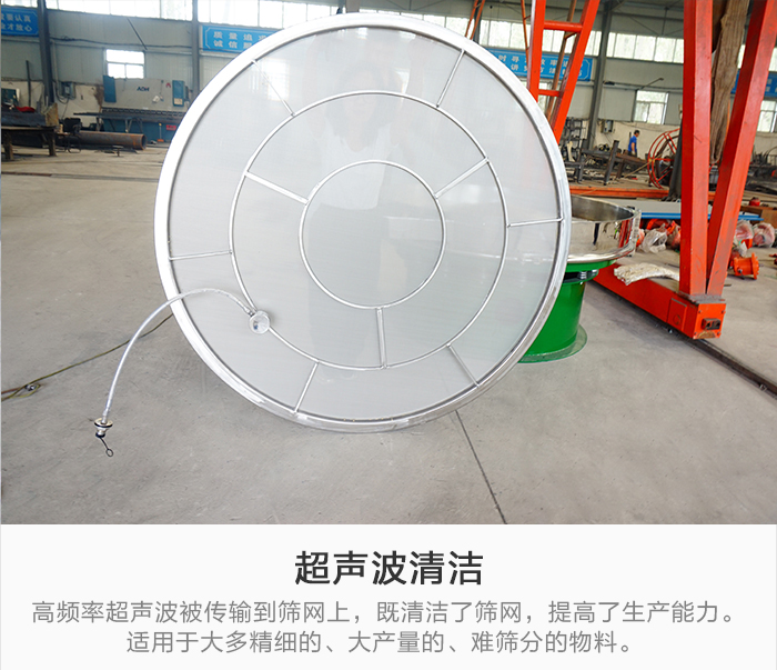 超聲波清潔:高頻率超聲波被傳輸?shù)胶Y網上,既清潔了篩網,又顯著提高了生產能力。適用于大多精細的、大產量的、難篩分的物料。