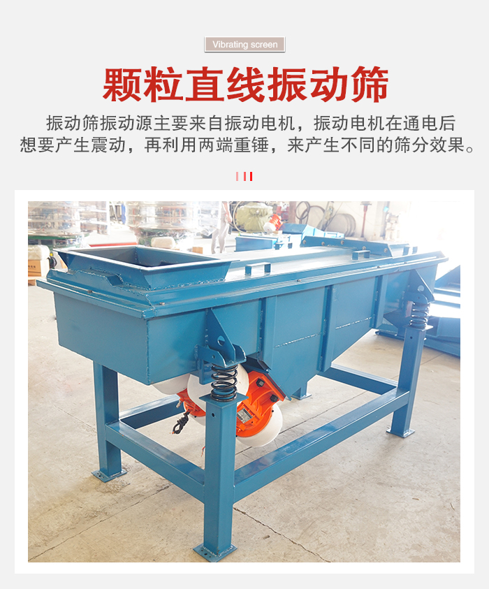 直線振動(dòng)篩(直線篩)系新型的篩分設(shè)備,對粉狀、顆粒狀物料的篩選和分級,廣泛用于塑料、磨料、化工、醫(yī)藥、建材、糧食、炭素、化肥、礦山、煤炭、冶煉、建材、耐火材料、輕工等行業(yè)。
