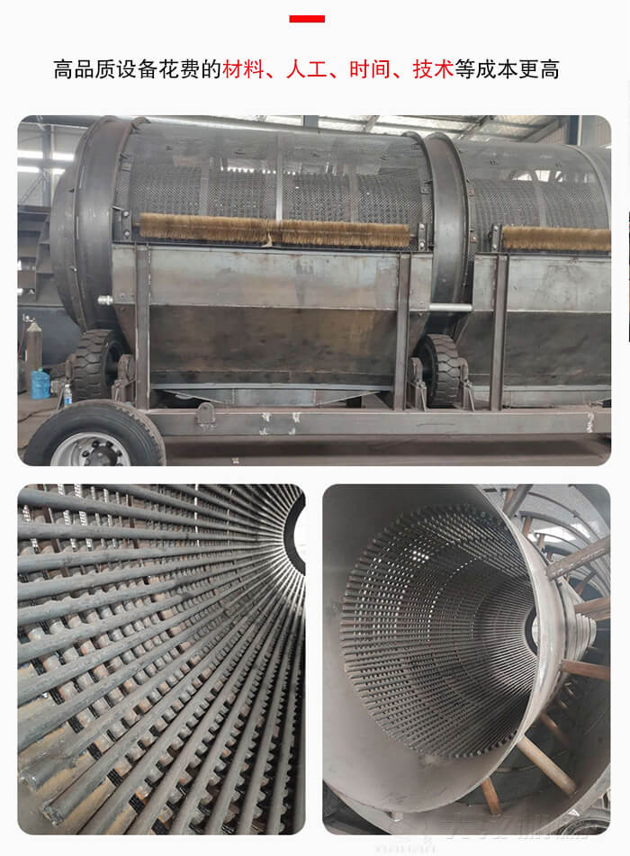 設(shè)備品質(zhì)是決定移動(dòng)滾筒篩價(jià)格的主要因素之一,質(zhì)量越好的設(shè)備做工更精細(xì),選材更用心,所以花費(fèi)的材料、人工、時(shí)間、技術(shù)等成本更高,其市場(chǎng)價(jià)格則會(huì)更高,成本自然而然就更高,其價(jià)格也會(huì)更貴,但是后期使用中效果(包括、、產(chǎn)量等方面優(yōu)勢(shì))也會(huì)更顯著,帶給用戶的利潤(rùn)價(jià)值更高。
